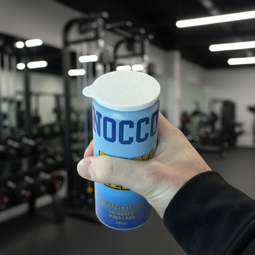 Standardstorleken för moderna energidrycker. Detta 58 mm-lock sitter perfekt på Nocco, Celsius, Monster och Pepsi Max.